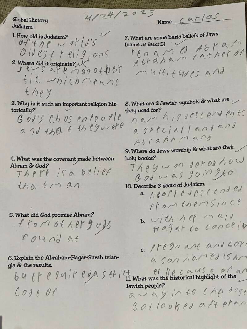 "In a general education high school setting, self-contained special education classes serve District 75 behavioral students who require a structured learning environment tailored to their unique needs. These students are grouped together to follow the same curriculum, but at a modified pace that aligns with their comprehension and learning capacities. This approach ensures that academic progress is achieved while simultaneously addressing and supporting their behavioral challenges." Worksheets are heavily scaffolded at first from sept then as the months go bye less and less scaffolding is needed as the class understand what they need to underline and what they need to look for interms of evidence and answers.